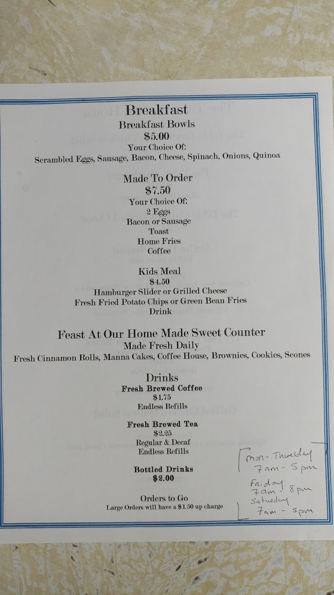 Welcome to The Table Coffee House, a charming café located at 1100 N 25th St, Middlesboro, KY. This inviting spot exudes warmth and hospitality, offering a delightful menu that caters to every taste. Start your visit with comforting hot teas like Chai, Earl Grey, or Lavender, perfect for winding down or indulging in a peaceful moment on their beautiful wrap-around porch.